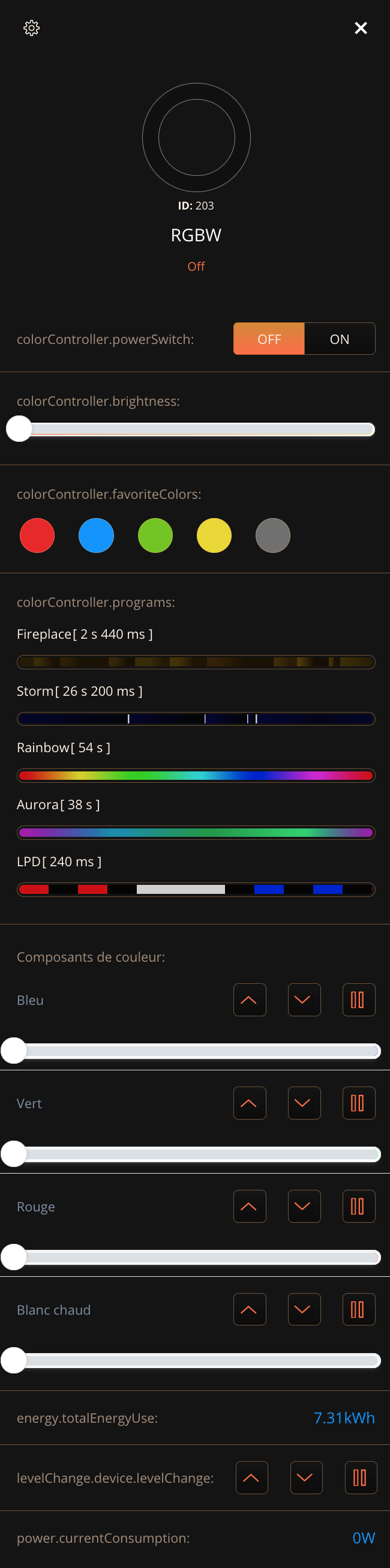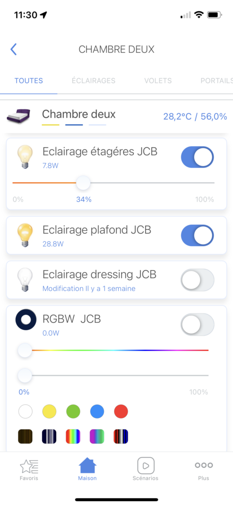 - Modifier les couleurs émises par une ampoule ou un bandeau LED RGB(W)